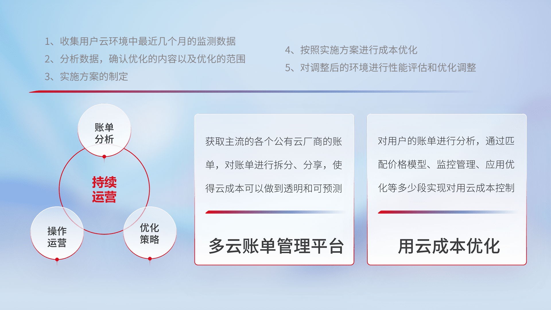 监控业务系统资源开销,,,对资源的消耗精确计量,,,,实现费用的透明化管理,,,,不断提升资源使用率,,调整资源购买方式,,,,降低资源费用成本,,用云成本可预测、、、、用云费用可优化,,,云资源配额有据可依。。